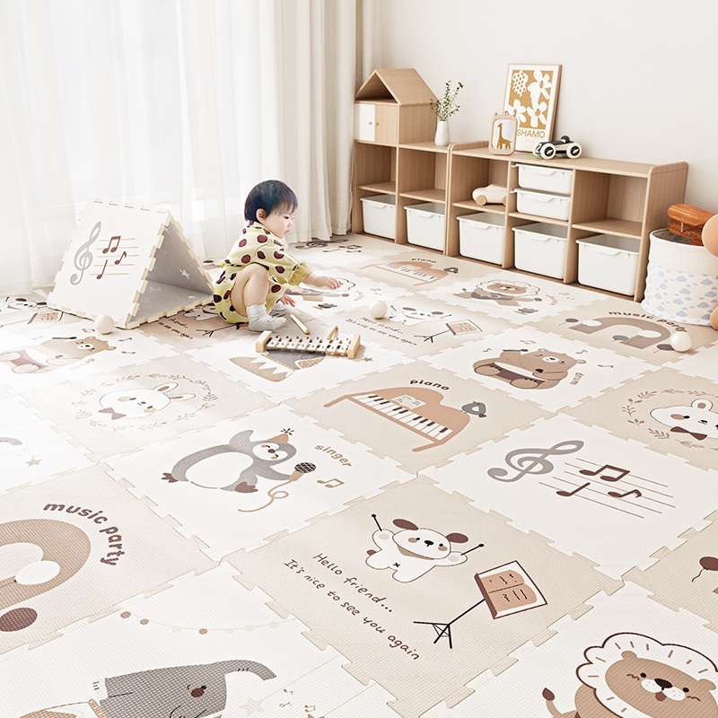 Podložka je vyrobená z mäkkého a bezpečného materiálu, ktorý poskytuje deťom pohodlie a ochranu pri pohybe na zemi.