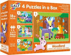 Puzzle pre deti, ktoré obsahuje set 4 skladačiek s motívom zvieratiek z lesa.
