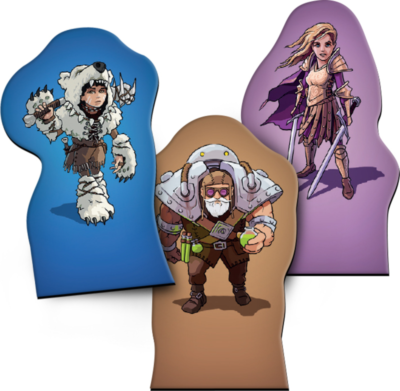 - 3 kartónové figurky hrdinov s plastovými stojančekmi