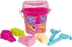 • Obsahuje: Kýblik v tvare srdca s vekom, lopatku a hrabličky, 4 formičky s tematickými tvarmi - točená zmrzlina, nanuk, mriežkový koláč a croissant.