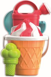 • Obsahuje: Kýblik v štýle kornútku, sitko v podobe točenej zmrzliny, tvorítko v tvare zmrzliny s 3 kopčekmi, kanvičku, lopatku a hrabličky.