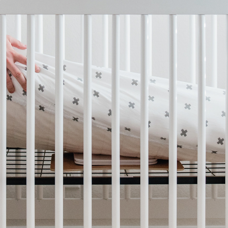 Drevenú podložku umiestnite pod senzorovú podložku aby ste zaistili správnu funkciu senzorovej podložky, ktorá je tak bezpečne umiestnená a nehrozí riziko jej vypadnutia medzi roštami postieľky.