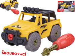 Skrutkovacie terénne auto na voľný chod rozvíja jemnú motoriku detí. Autíčko je v žlto-čiernom prevedení.