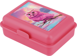 Plastový box na desiatu s uzatváraním na jednu zámku, obsahuje deliacu priehradku.Rozmery: 17,8 x 12,2 x 6 cm.