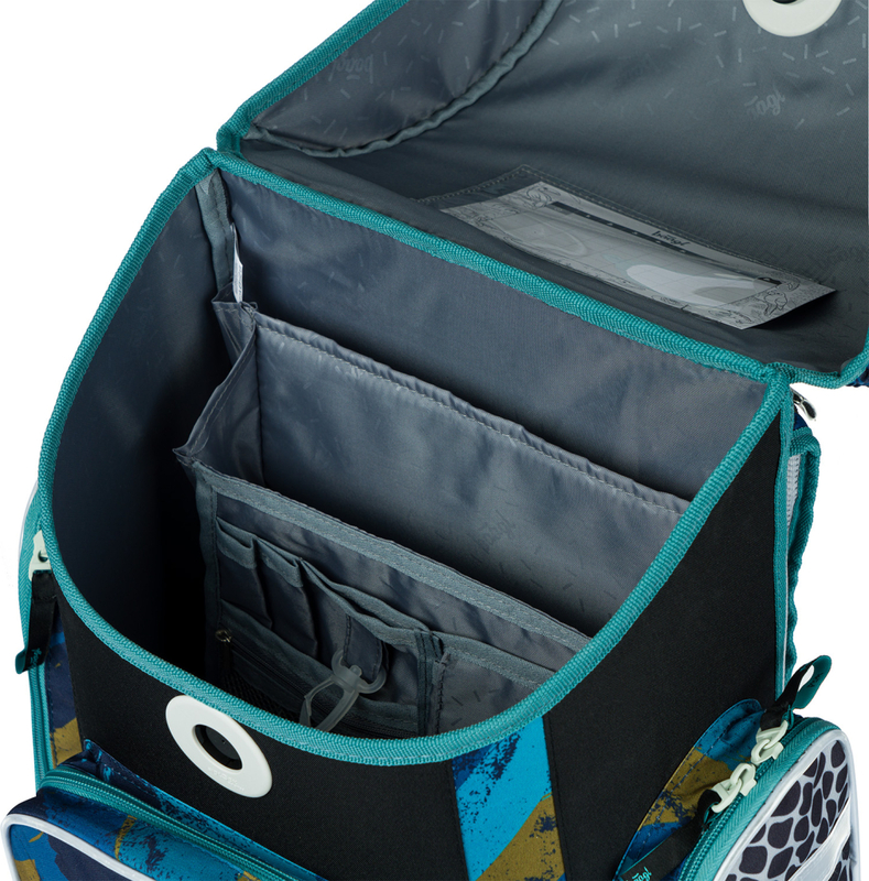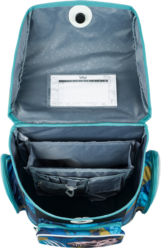 • Vnútri aktovky je priehľadná kapsa s rozvrhom a vnútorný organizér umožňujúci rovnomerné rozloženie hmotnosti.