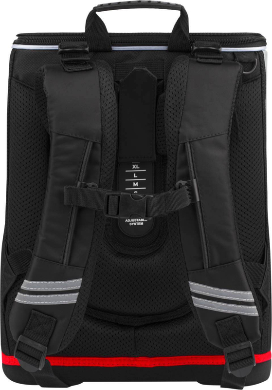 • Vnútri aktovky je priehľadná kapsa s rozvrhom a vnútorný organizér umožňujúci rovnomerné rozloženie hmotnosti doplnený gumičkou kvôli fixácii.