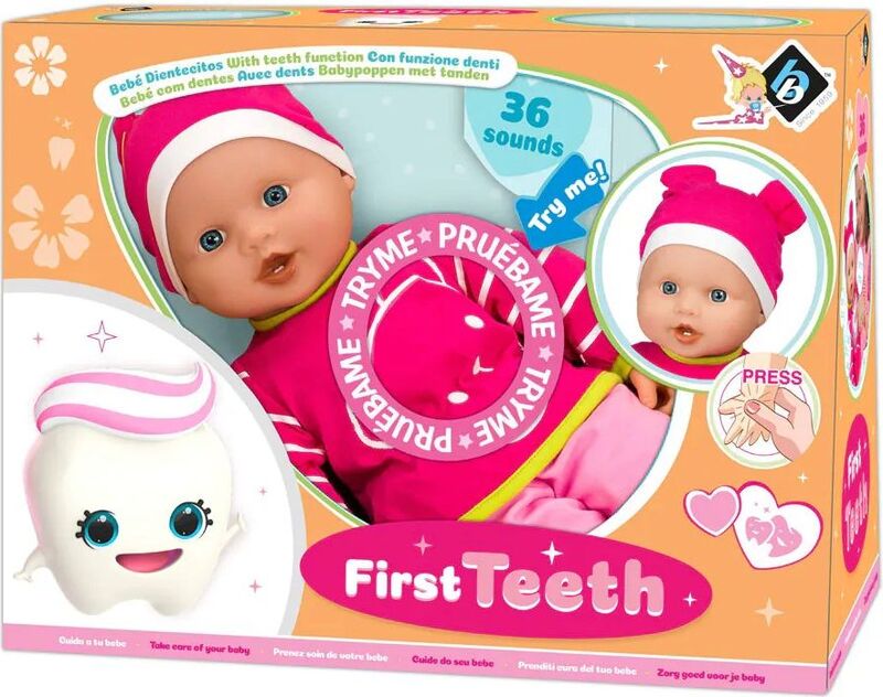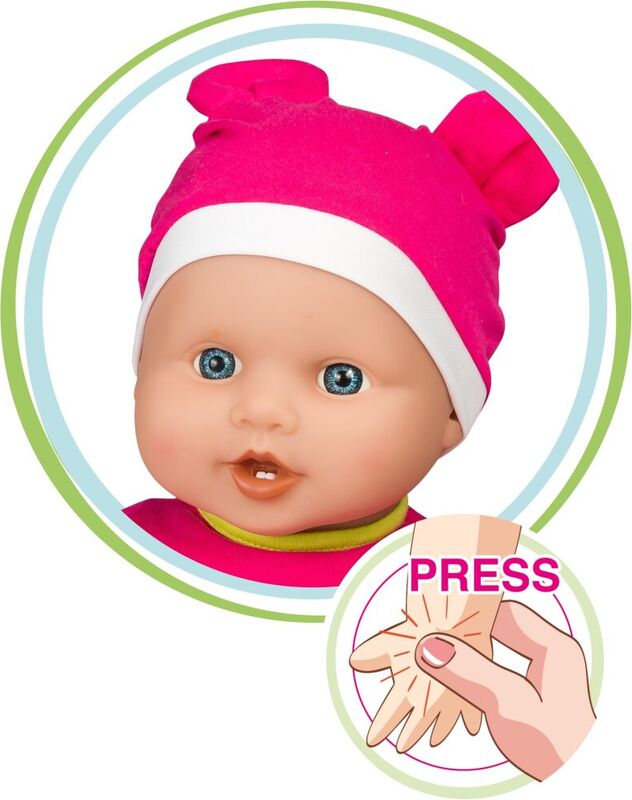 - Bábätku sa stlačením ruky vysunú zúbky. Mäkké telíčko, stlačením tlačidla na hrudi vydáva zvuky.