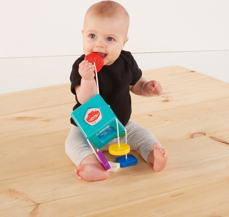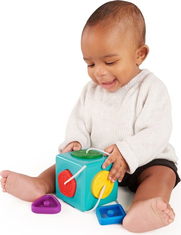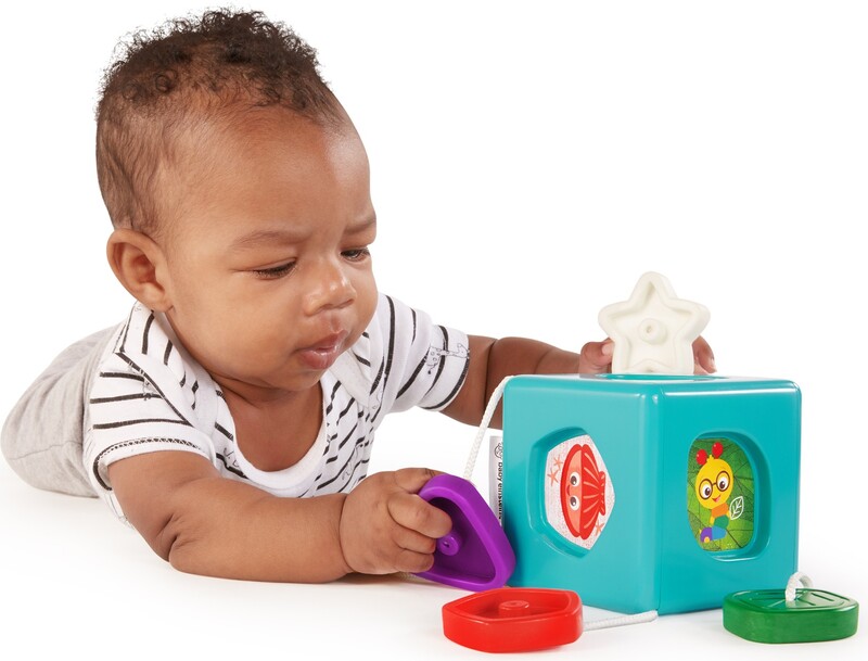 Tvarované dieliky sa vďaka šnúrke nikdy nestratia a všetky ľahko zapadajú do kocky. Táto senzorická kocka Baby Einstein™ podporuje rozvoj zmyslových a motorických schopností a zároveň zabaví vaše dieťa doma alebo na cestách.