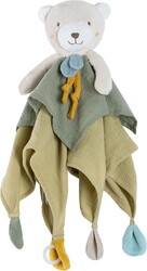 Veľa úchopových prvkov, mäkké materiály a hlavička líšky sú prvky, ktoré stimulujú zmysly bábätka a tým sa dieťatku rozvíja hmat a úchop. Praktický krúžok na cumlík zaistí, že sa cumlík nestratí pri žiadnom dobrodružstve. Dve mäkké hryzátka v neónovo oranžovej a žltej farbe pomáhajú s prerezávaním zúbkov.