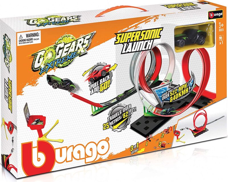 „Go Gears Extreme SuperSonic Launch“ od Bburago je nevyhnutnosťou pre mladých pretekárov. Hraciu súpravu 3 v 1 je možné zostaviť v troch rôznych variantoch.