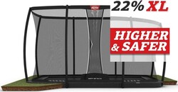 Zabudovaná obdĺžniková tampolína BERG Ultim Champion FlatGround 410 sivá s ochrannou sieťou Deluxe XL Trampolíny