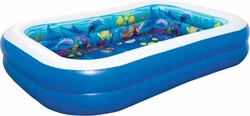 Roh narvala a tuleňov nos slúži ako zábavná hra s hádzaním krúžkov, kde môžu malí dobrodruhovia vyskúšať svoje zručnosti. Kreatívnu zábavu navyše zaistia 2 penové rybičky. Deti sa môžu hrať s rybkami alebo ich vložiť tučniakovi do papule a obohatiť tak zábavu. Priestor bazéna ponúka priestor pre vodné radovánky a je možné ho ľahko vypustiť pomocou integrovaného vypúšťacieho ventilu. S vodnou kapacitou 84 litrov je dostatok miesta na veselé špliechanie.