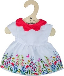 Bigjigs Toys Biele kvetinové šaty s červeným golierom pre bábiku 34 cm