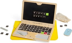Počítajte, píšte, čítajte a učte sa hrou s dreveným notebookom! Na magnetickej obrazovke notebooku si deti môžu pomocou magnetických písmen, číslic a symbolov zostavovať slová alebo precvičovať matematiku. Alebo písať na tabuli kriedou, ktorú ľahko odstráni pomocou myši s gumou. Deti si môžu notebook ozdobiť pomocou priloženej sady samolepiek a na cestovanie vložiť do praktického puzdra.