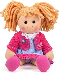 Zoznámte sa s Maggie! Táto mäkká a maznavá látková bábika len čaká na lásku a priateľstvo svojho nového najlepšieho priateľa či priateľky. Jej krásny outfit sa skladá z modrých šiat so vzorom ružových plameniakov a ružového bolerka. Svojím milým úsmevom si určite získa srdce dieťaťa na prvý pohľad.