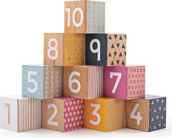 Výučba počtov a číslic môže byť zábava! 1, 2, 3, predstavte deťom svet čísel s týmito krásnymi kockami z FSC® dreva. Tieto ľahké a farebné kocky s číslami majú krásny dizajn, v ktorom sa snúbi prírodné drevo s farebným lakovaním. Zabaví nielen detské rúčky, ale aj oči.
