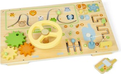 Táto pestrofarebná hracia doska s roztomilými zvieratkami prináša množstvo zábavy, vďaka ktorej bude môcť Vaše dieťa rozvíjať zručnosť, zvedavosť a jemnú motoriku. Rôzne aktivity ako je stláčanie tlačidiel, labyrint, ozubené kolieska, otáčacie a posuvné doštičky a ďalšie dávajú dieťaťu možnosť precvičovať jemnú motoriku, koordináciu ruka-oko, zručnosť pri riešení problémov a porozumení príčine a následku. Pestré farby, roztomilé obrázky a množstvo aktivít stimulujú zmyslové vnímanie detí.