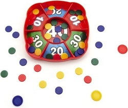 Hra obsahuje 4 rôznofarebné sady koliesok, vždy 5 malých a 1 veľké