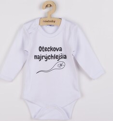 Originálne bavlnené dojčenské body s dlhým rukávom New Baby, s vtipným nápisom OTECKOVA NAJRÝCHLEJŠIA.