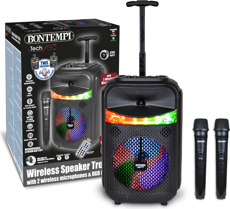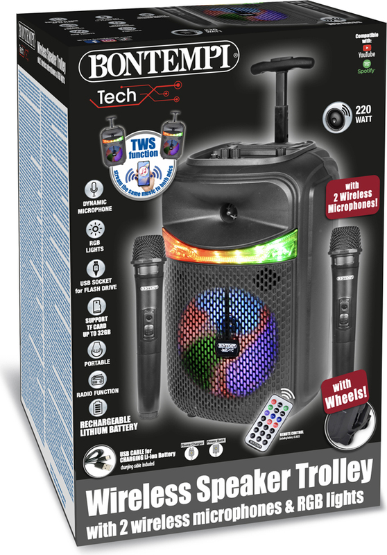 Bontempi Bezdrôtový akustický kufrík na kolieskach s 2 bezdrôtovými mikrofónmi, RGB