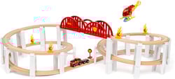 1x lokomotíva s turbo tlačidlom, 1x vagón, 8x drevené vlakové koľaje, 1x nástupište, 1x koľajnice na nástupište, 1x tunel, 1x panáčik a niekoľko ďalších doplnkov.