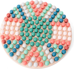 Obsah balenia: drevo, lepenka | 1 doska priemer 19 cm, 217 kolíčkov 1×2 cm, 6 obojstranných kariet s predlohou, bavlnená taška. Vyrobené z vysoko kvalitného dreva a kartónu.