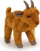 Má hnedý kožúšok, realistické detaily, ako sú rohy, ňufáčik, fúzy a výrazné oči, ktoré mu dodávajú autentický a priateľský vzhľad.