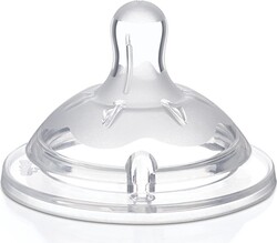 Tvarovaný cumlík s mäkkou hlavičkou, ktorá postupne prechádza do pevnejšieho základu. Pomáha lepšiemu prisatiu a prirodzenejšej skúsenosti s kŕmením. Jedinečne navrhnutý cumlík spolu s vnútorným ventilačným systémom dojčenskej fľašky pomáha batoľatám kŕmiť sa vlastným tempom.