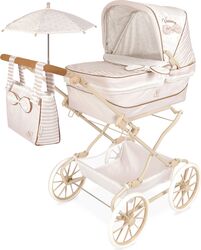 Doplnky a vybavenie:• Prenosná taška na bábiku s pohyblivým štítom proti vetru a vrecúškami• Ozdobná odnímateľná taška na kočík alebo do ruky• Polohovacia lôžková časť premeniteľná na športový sedací variant• Trojbodový pásový systém na uchytenie bábiky• Veľký úložný priestor v dolnej časti kočíka• Výškovo nastaviteľná rukoväť, výška: 56, 66, 75, 80 cm• Otočné predné kolieska pre ľahšiu jazdu• Rozmery kočíka: 75 × 40 x 72 cm (celková výška kočíka)• Rozmery lôžkovej časti 53 x 26 cm (d x š), výška opierky 17 cm, hĺbka sedadla 20 cm• Rozmery prenosnej tašky: 50 x 26 x 15 cm (d x š x v)• Bábika s doplnkami nie je súčasťou balenia