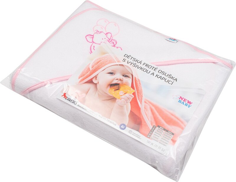 Krásna detská froté osuška New Baby je vyrobená z mäkkého, kvalitného a veľmi savého materiálu a preto je ideálna pre bábätká i staršie deti. Osuška krásne zahreje po kúpeli a praktická kapucňa chráni hlavičku dieťatka pred nepríjemným chladom. Osuška dokonale absorbuje vlhkosť, pričom veľmi rýchlo schne. Zdobí ju veselý obrázok zvieratka.