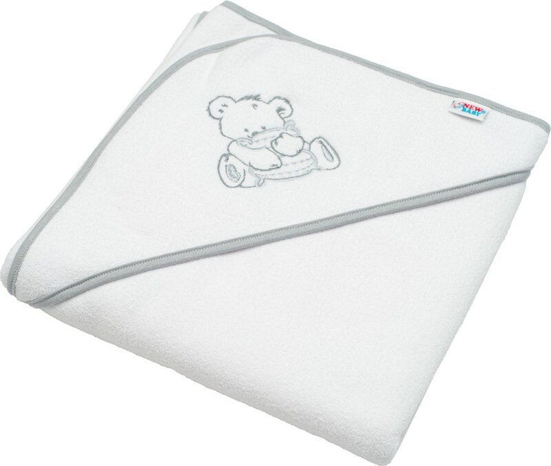 Detská froté osuška s výšivkou a kapuckou New Baby 80x80 biela medveď