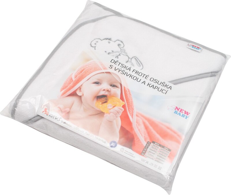 Krásna detská froté osuška New Baby je vyrobená z mäkkého, kvalitného a veľmi savého materiálu a preto je ideálna pre bábätká i staršie deti. Osuška krásne zahreje po kúpeli a praktická kapucňa chráni hlavičku dieťatka pred nepríjemným chladom. Osuška dokonale absorbuje vlhkosť, pričom veľmi rýchlo schne. Zdobí ju veselý obrázok zvieratka.