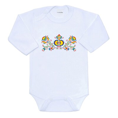 Originálne, štýlové a pohodlné detské body s nádhernou folklórnou potlačou New Baby, dokonale spája tradíciu s moderným dizajnom. Ideálna voľba pre malých milovníkov ľudovej tradície, ktorí ocenia kvalitné materiály a jedinečný vzhľad. Folklórny vzor inšpirovaný tradičnými motívmi dodá vášmu dieťatku šmrnc.
