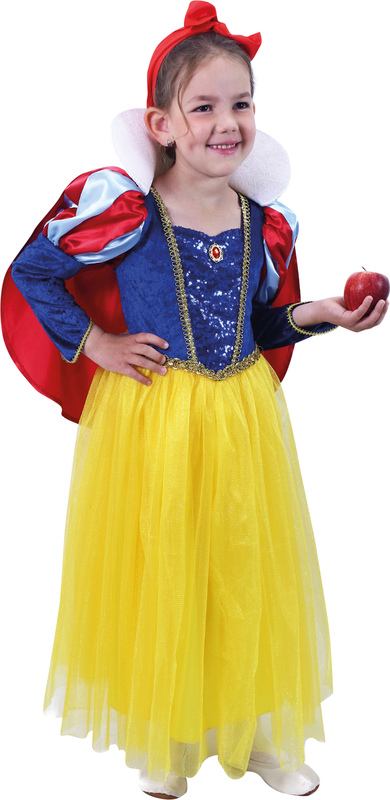 Premeň sa behom chvíľky v pôvabnú Snehulienku! Kostým o veľkosti S je určený pre dievčatká vo vekovom rozmedzí 4-6 rokov (105-116 cm).
