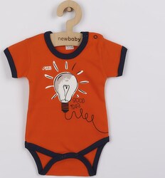 Dojčenské body s krátkym rukávom New Baby Happy Bulbs. Body je celopotlačené vtipnými a šťastnými žiarovkami s lemom okolo krčku, ručičiek a nožičiek. Zapínanie na cvočky na ramienku a medzi nožičkami, uľahčuje obliekanie a prebaľovanie.