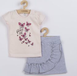 2-dielna súpravička pre dievčatká New Baby Butterflies. Súpravička sa skladá z trička a sukničky. Tričko s krátkymi nariasenými rukávmi je zdobené obrázkom motýlikov.