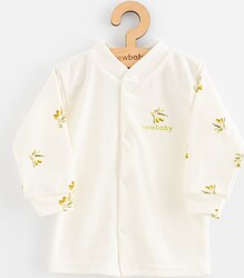 Krásny bavlnený dojčenský kabátik New Baby Olivy s jemnou potlačou oliviek. Zapínanie na cvočky po celej dĺžke uľahčuje obliekanie aj prebaľovanie.