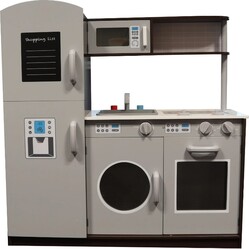 Drevená kuchynka s práčkou urobí radosť každej malej gazdinke. Tento herný set rozvíja detskú kreativitu a predstavivosť. Kuchynka je vyrobená z kvalitného dreva. Vybavená je chladničkou, sporákom s rúrou, drezom, práčkou a mikrovlnnou rúrou. Už sa tiež tešíte na tie skvostné dobroty, čo vám vaša malá pomocníčka pripraví?