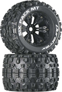 Kompletné kolesá Duratrax Six Pack 3.8" MT pre RC modely áut. Disk má čiernu farbu, tvrdosť zmesi pneumatiky je CS - športová zmes stredná.