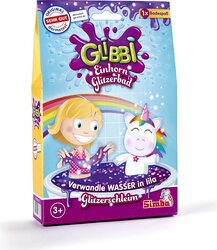 Prášok Glibbi premení vodu na fialový trblietavý sliz a zábavné kúpanie môže začať, potom stačí len doplniť vodu a vytiahnuť zátku.