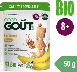Zloženie: 65 % bio ryžová múka, 10 % bio cícerová múka, 7,5 % bio sušené plnotučné MLIEKO, 6 % bio banánový prášok, 5 % bio quinoová múka, 5 % bio pohánková múka, organická prírodná aróma, vitamín B1. Bezgluténové. Obsahuje laktózu. Alergény sú označené VEĽKÝM PÍSMOM.