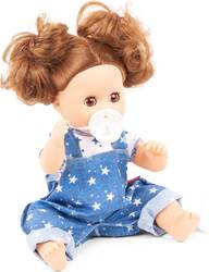 Veľké oči tejto malej Aquini sa radostne pozerajú na jej bábikovú mamu a otca, pretože dnes má na sebe svoj obľúbený outfit so hviezdičkovým vzorom. Pohodlné montérky (nohavice na traky) so šik ozdobným prešívaním a ladiacim tričkom pod nimi. Šikovné vrkoče jej naozaj pristanú, takže sa môže ísť von hrať s kamarátmi. Cumeľ zatiaľ nepotrebuje, ale neskôr, keď sa unaví. Naše bábiky Sleepy Aquinis sú anatomicky správne detské bábiky, ktoré dokážu piť a cikať (používať nočník). Bábika Sleepy Aquini Girl My Star má hnedé zatváracie oči.