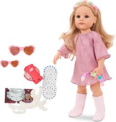 Hannah má dnes veľa plánov. Ide na párty spolu so svojou mamičkou bábik a obe chcú vyzerať úžasne – presne ako najlepšie kamarátky. Obe si dajú do vlasov mašľu s farebnými brmbolcami a slnečné okuliare, hneď potom, čo si na šaty a dokonca aj na vlasy nalepia trblietavé kamienky pomocou nového aplikátora na šperky. Nabi, stlač, trblietaj sa! Wau – to vyzerá skvele! Hannah má na sebe šaty strihu A so zľahka plisovanou sukňou a kombinuje ich so svojimi štýlovými čižmami. Perfektný vzhľad!