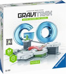 Súprava GraviTrax GO Flexible obsahuje 37 rozmanitých stavebných prvkov, ktoré vám umožnia preniknúť do sveta GraviTraxu a začať tak stavať základné dráhy GraviTrax.