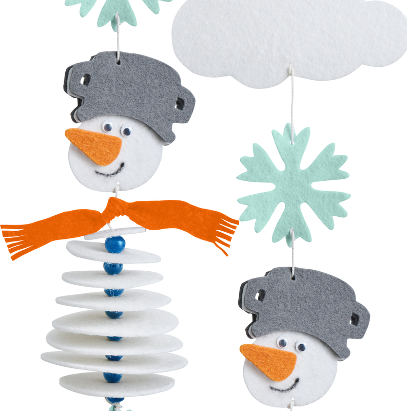 Podporuje jemnú motoriku a koncentráciu a obsahuje jednoduchú obrázkovú inštrukciu s vysokou pravdepodobnosťou úspechu. V sade nájdete všetko potrebné pre vytvorenie troch čarovných plstených girland so snehuliakmi – plstené dieliky ľahko uchopiteľné aj pre malé deti.