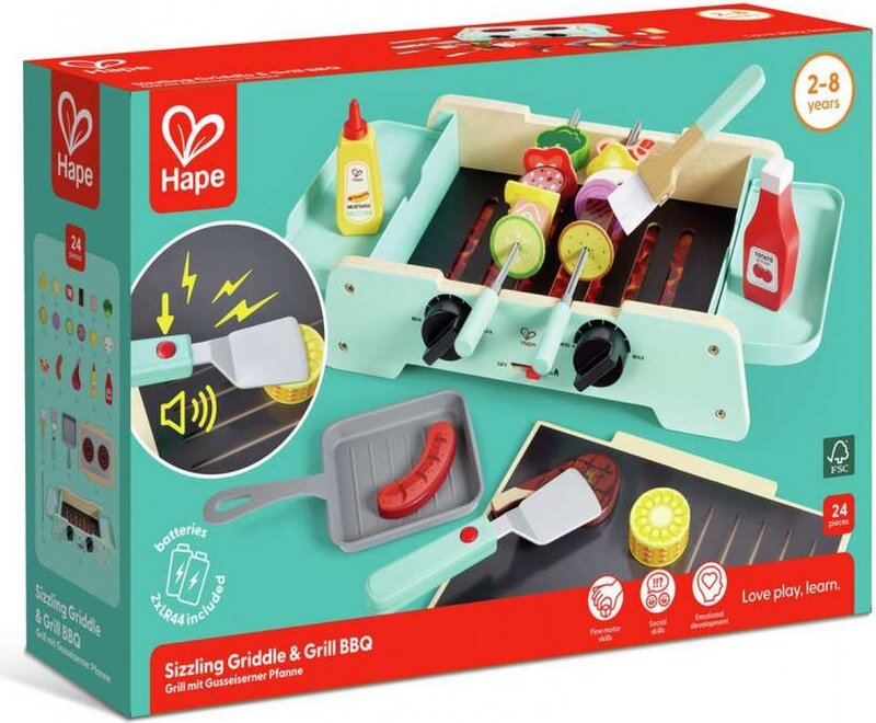 Objavte sadu grilu a panvice Hape , drevenú hračku s kuchynskou tematikou pre deti od 2 rokov, ktoré sa hrajú na kuchynku .