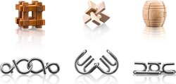 Súbor kvalitných kovových a drevených hlavolamov s návodom na ich riešenie vo vnútri. Vyskúšaj svoj dôvtip, logiku a trpezlivosť!
