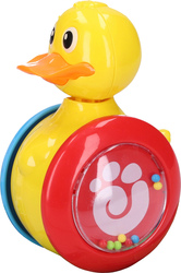 Farebná kačička zaujme pozornosť detí vďaka húpavému pohybu a hrkajúcim zvukom malých guličiek.