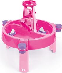 Ružový hrací stolík 3v1 s motívom jednorožca si všetky dievčatká ihneď zamilujú. Stolík je vhodný pre vnútorné i vonkajšie použitie. Zložením vrchnej dosky, ktorá slúži na písanie a kreslenie, vznikne hracia plocha pre hru s vodou alebo pieskom. Naberte vodu do téglikov, vylejte ju do vrchného lievika a sledujte, ako voda roztočí lopatky vodného kolesa a padá v kaskádach dole. Podporuje zmyslový vývoj. Hranie s priateľmi pomáha rozvíjať dôležité sociálne zručnosti.
