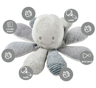 Hračka chobotnička edukačná 8 aktivít Lapidou grey